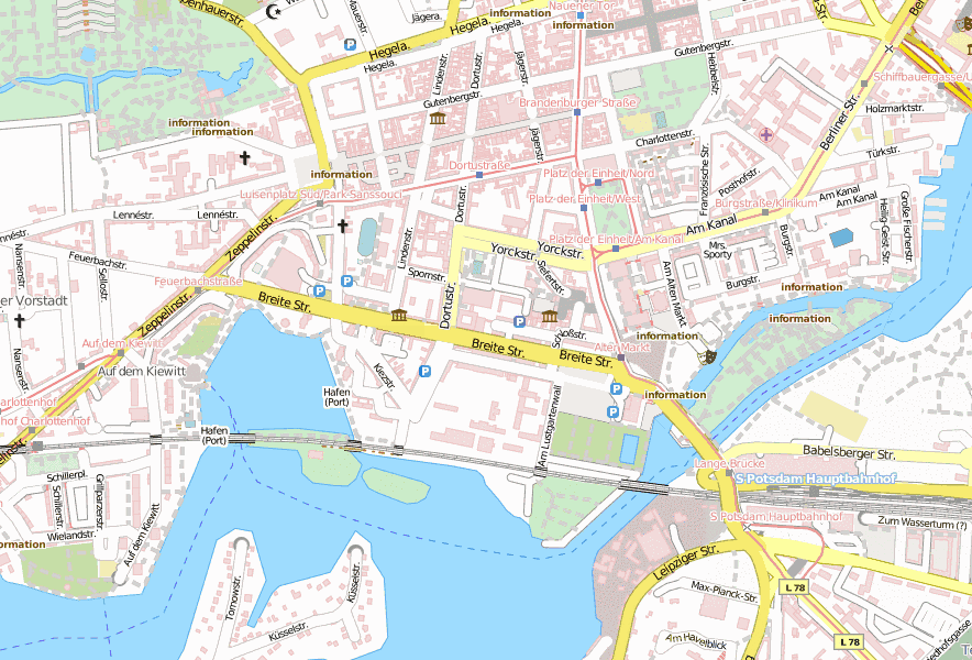 In der Umgebung sind berühmte Orten wie Breite Straße, Großes Militärwaisenhaus oder Garnisonkirche. Oft besucht sind folgende Stadtpläne: Brandenburger Tor, Berliner Dom, Sanssouci und Reichstag